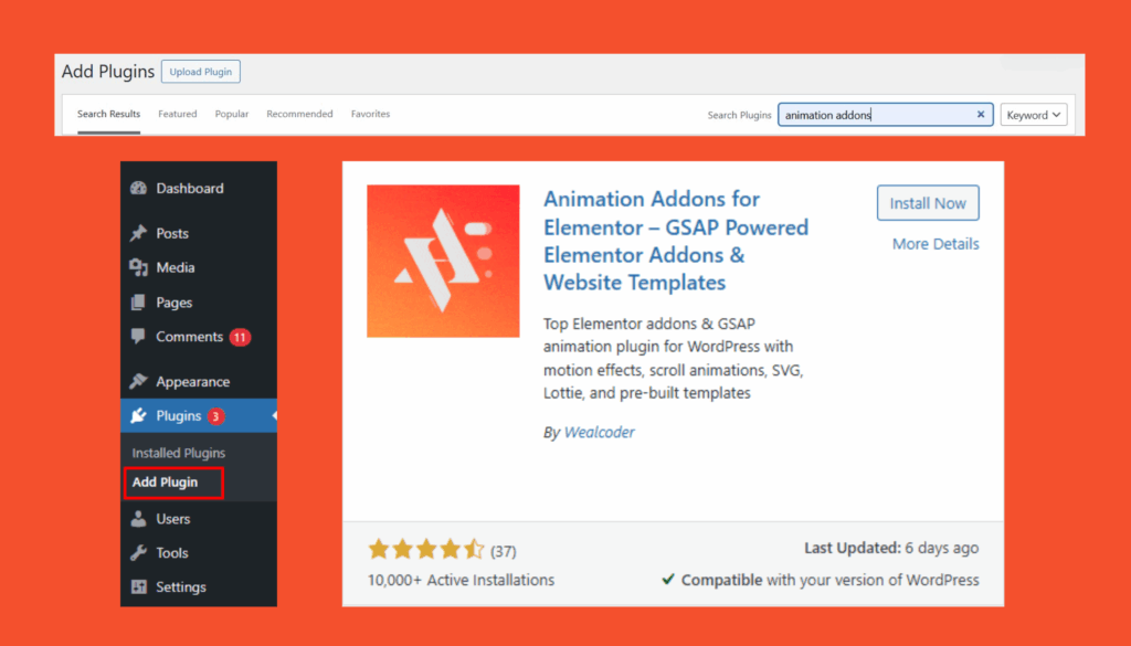 Step 1: First, make sure you have installed the Animation Addons plugin on your WordPress site.